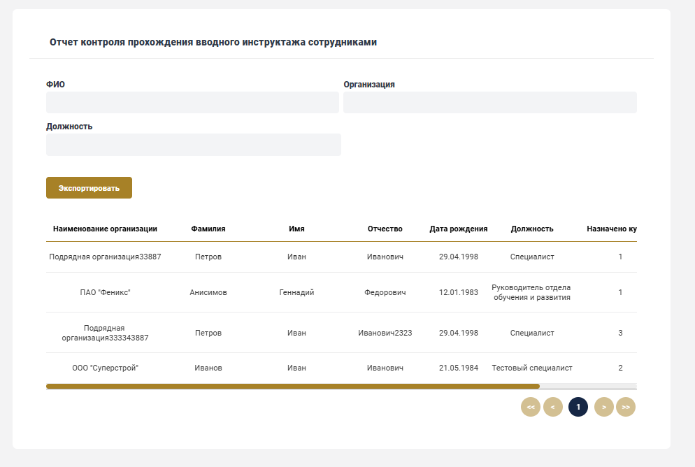 Сводные отчеты для вводных инструктажей можно посмотреть по обучениям и по каждой подрядной организации.