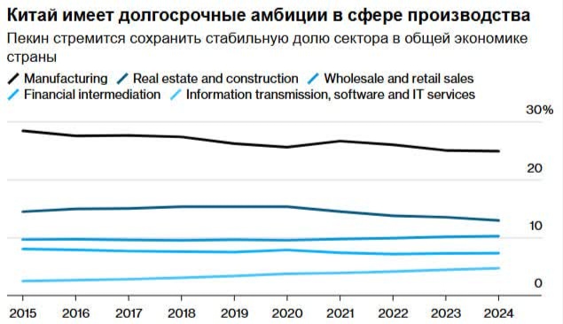 Сектор недвижимости остаётся ключевым тормозом экономики. В то же время, ставка на высокотехнологичное производство помогает снизить зависимость от застройки, хотя его доля в ВВП пока ограничена.
