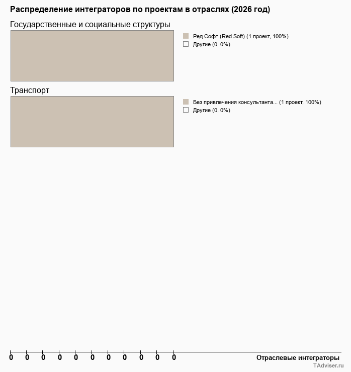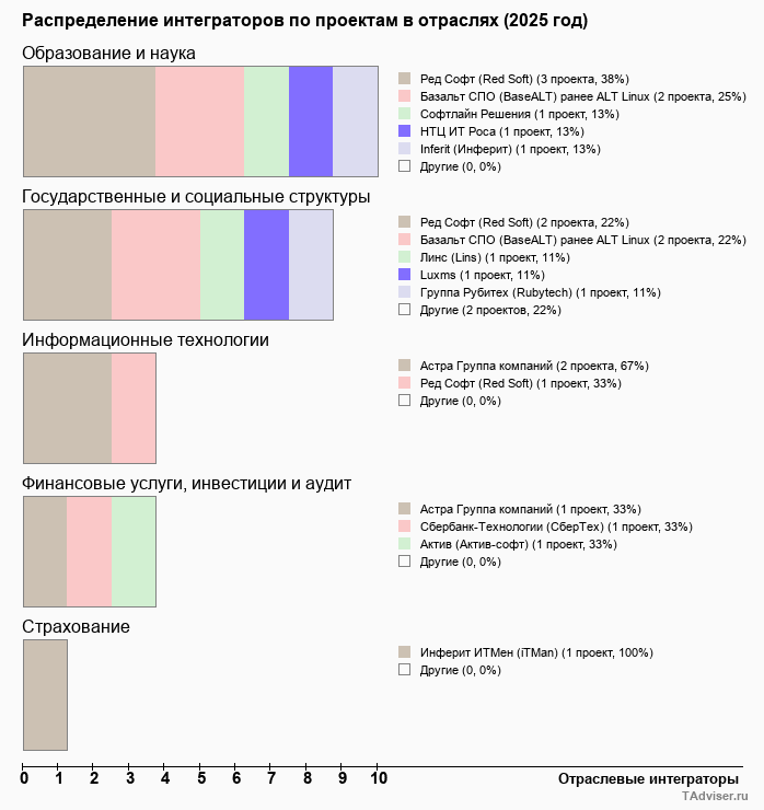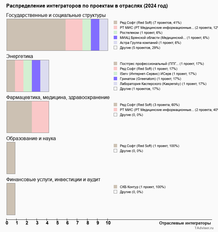 Отраслевое распределение по количеству проектов внедрений