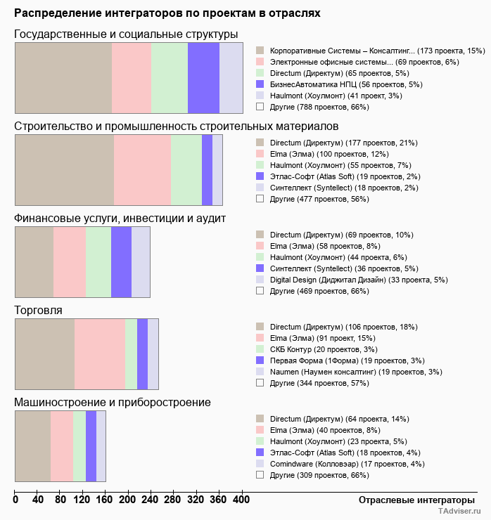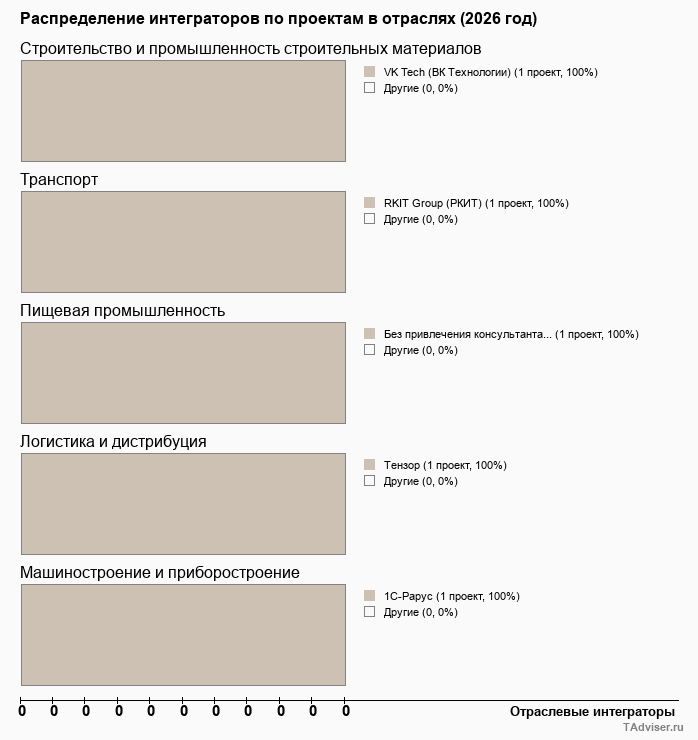 Отраслевое распределение по количеству проектов внедрений