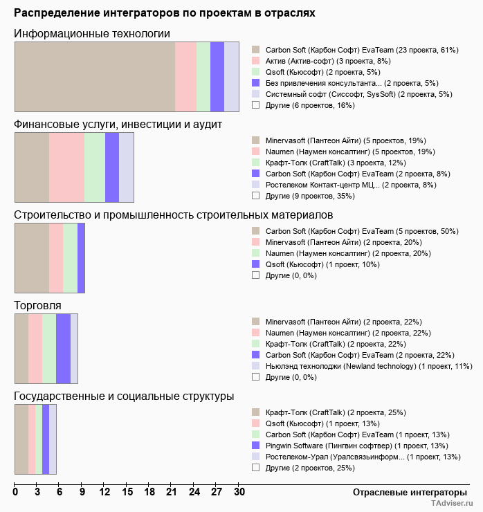 Отраслевое распределение по количеству проектов внедрений
